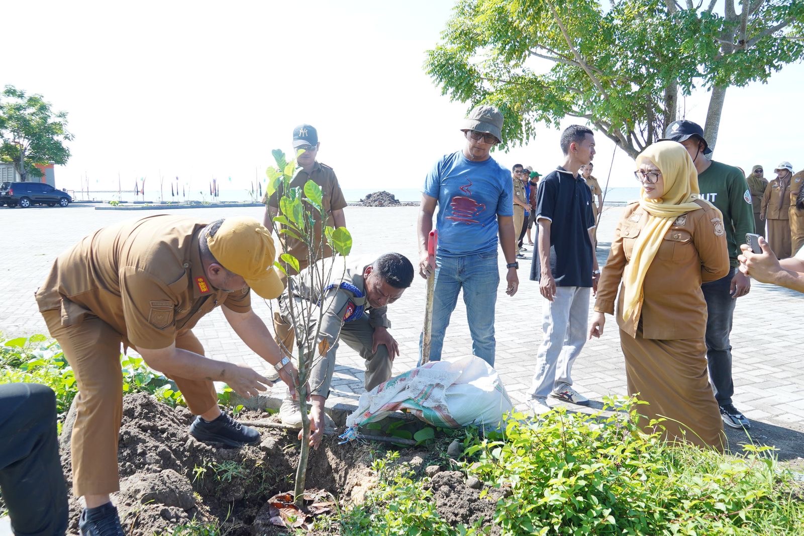 Untuk penanaman pohon di RTH dalam kota, Andi Utta sapaan akrab bupati mulai menanam pohon di area parkir Pantai Merpati usai memimpin Apel Gabungan OPD Lingkup Pemda Bulukumba, Senin 28 April 2025.