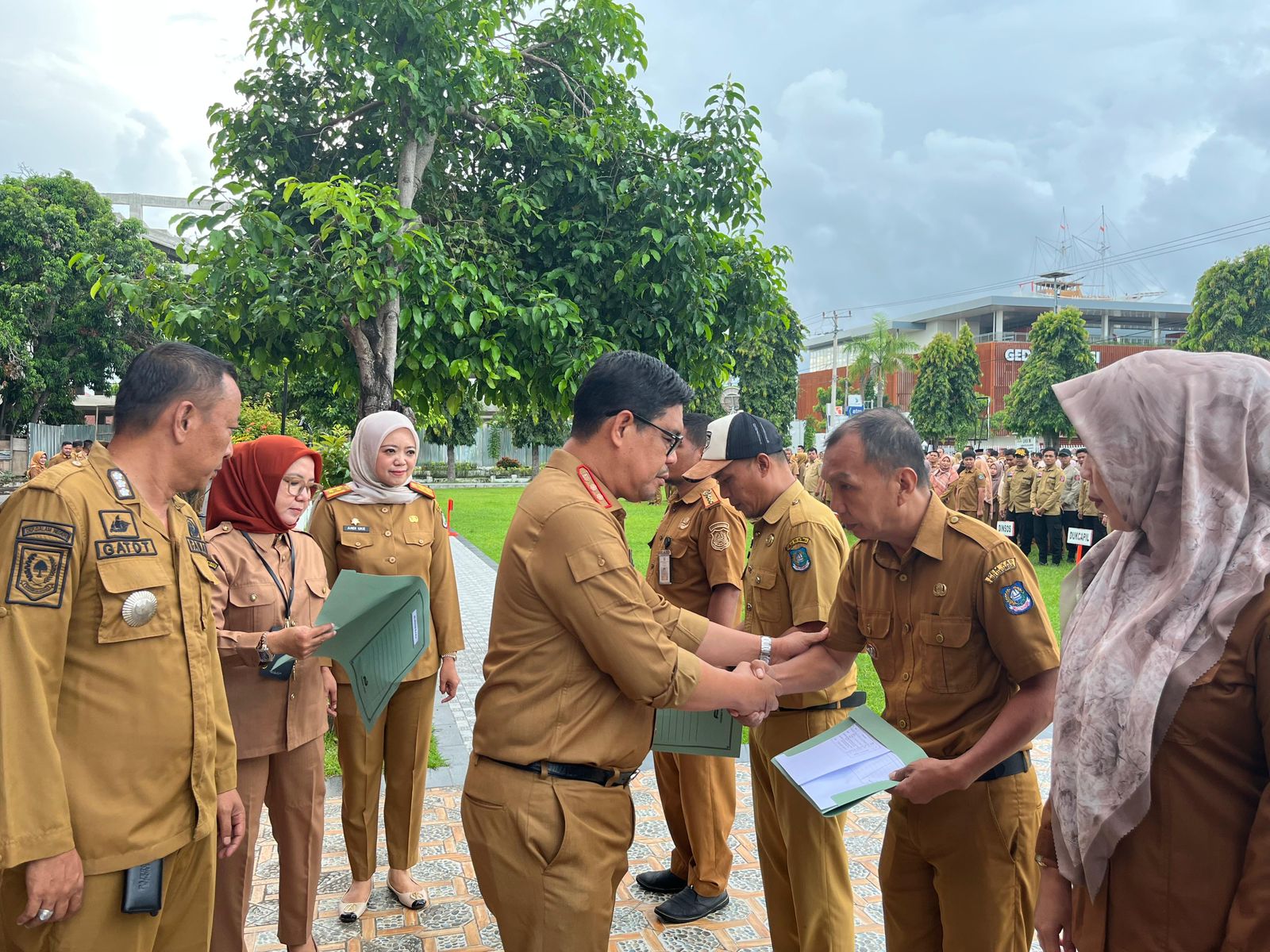 Selain penyerahan kewenangan ke kelurahan, ada hal lainnya yang menarik yang terjadi saat apel gabungan OPD, yaitu yang pertama, Wabup Edy Manaf meminta para kepala OPD untuk bergabung dalam barisan stafnya dan diminta untuk memastikan dan mengenali stafnya yang rajin dan tidak rajin ikut apel gabungan.