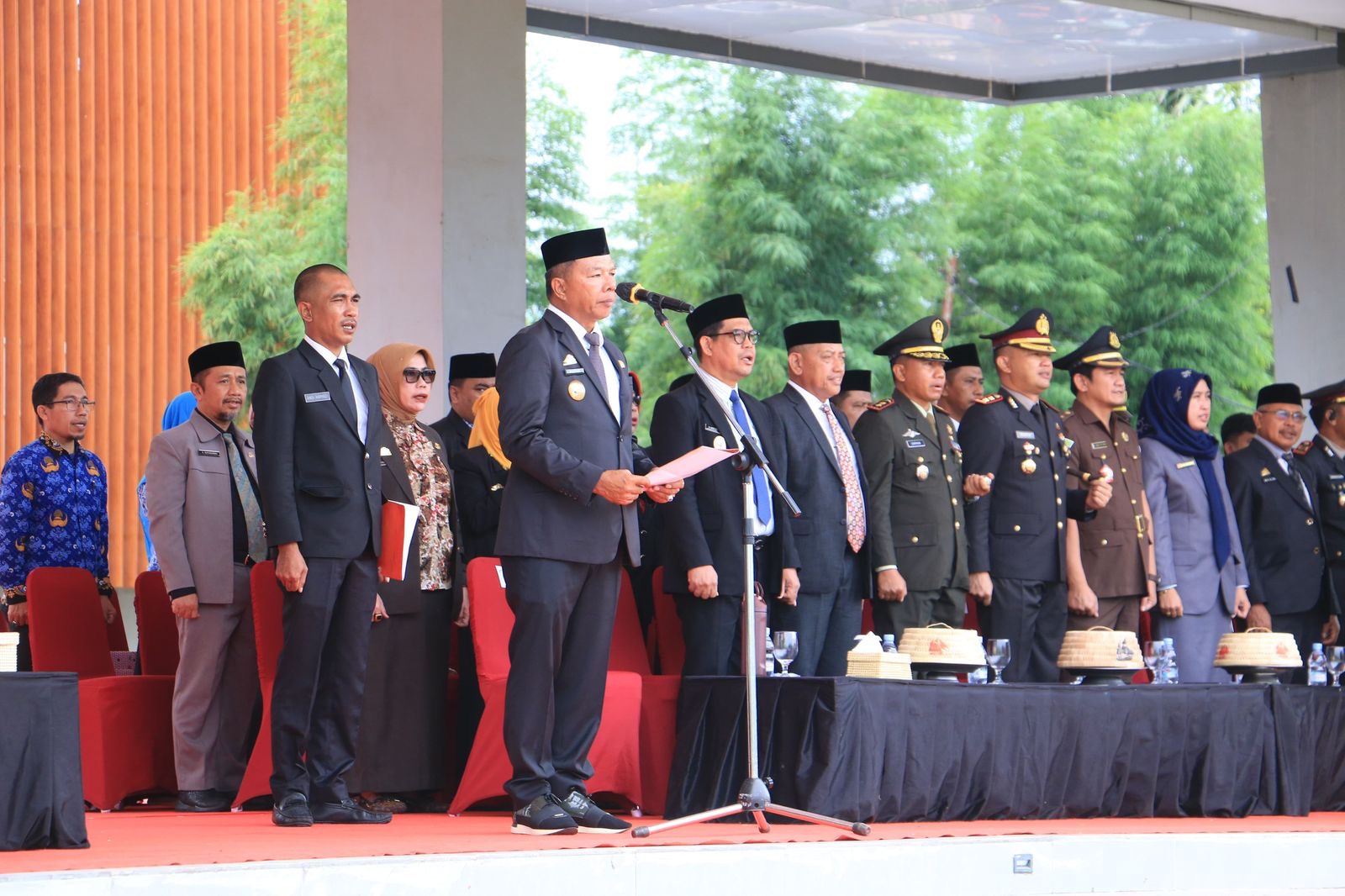 Selaku inspektur upacara, Bupati Andi Utta juga membacakan sambutan seragam Kepala Badan Pembinaan Ideologi Pancasila RI, Yudian Wahyudi.
