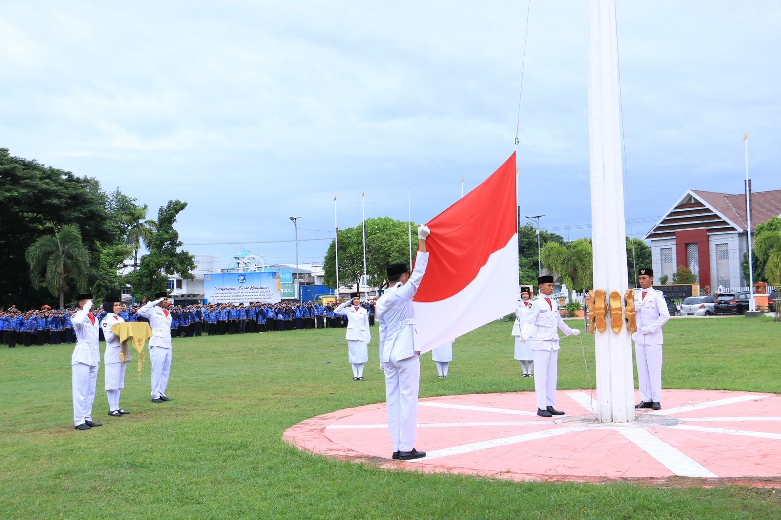 Upacara ini juga menjadi momentum istimewa bagi para CPNS dan PPPK oleh karena kegiatan ini dirangkaikan dengan penyerahan Surat Keputusan (SK) pengangkatan 100 orang CPNS dan 66 orang PPPK yang berasal dari tenaga non ASN untuk formasi 2024.