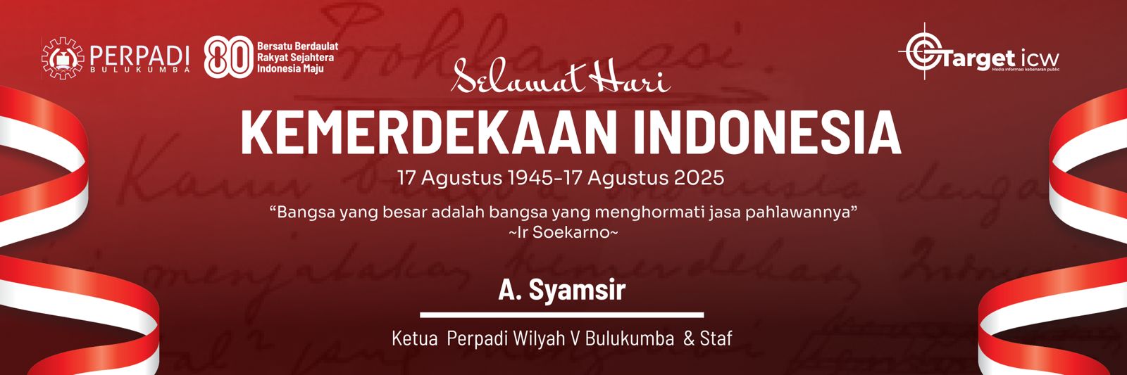 Bulukumba, Targeticw.com — Ketua PERPADI Wilayah V Bulukumba & Staf Mengucapkan Selamat Hari Kemerdekaan Indonesia 17 Agustus 2025. “Bangsa yang besar adalah bangsa yang menghormati jasa pahlawannya” -Ir. Soekarno-