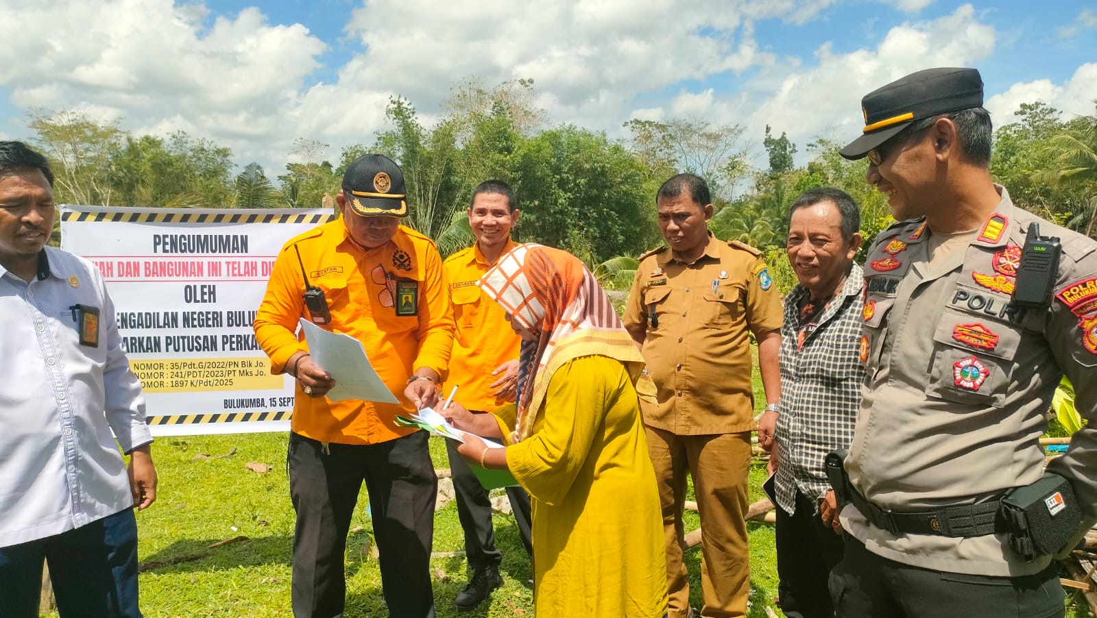 Eksekusi yang dipimpin Panitera Pengadilan Negeri (PN) Bulukumba tersebut dimulai sekitar pukul 08.48 Wita dengan pembacaan penetapan eksekusi di lokasi objek perkara.