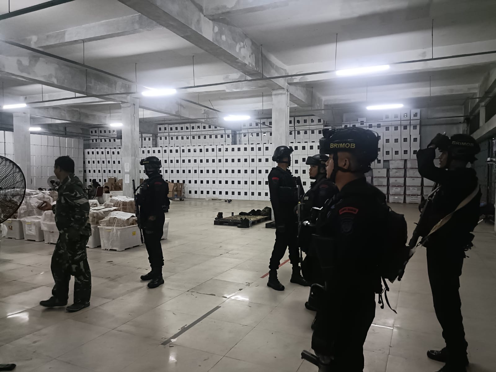 Selain itu, tim patroli juga melakukan pengecekan di gudang logistik KPU yang berada di Jalan Poros Panciro, Kecamatan Bajeng, Kabupaten Gowa, guna memastikan keamanan logistik pemilu.