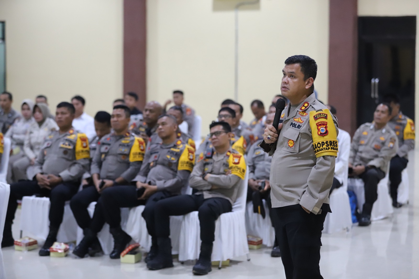 Kegiatan ini dipimpin oleh Kapolres Gowa, AKBP R.T.S Simanjuntak, S.H., S.I.K., M.M., M.I.K., dan dihadiri oleh Pejabat Utama (PJU), Kapolsek, Kaurmintu, serta operator dari Bag, Satfung, dan Polsek jajaran Polres Gowa.