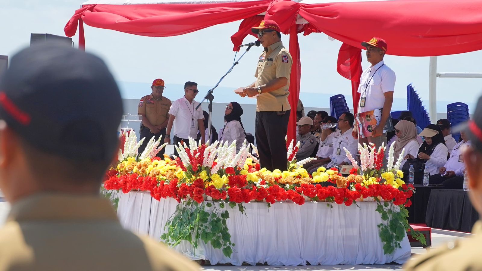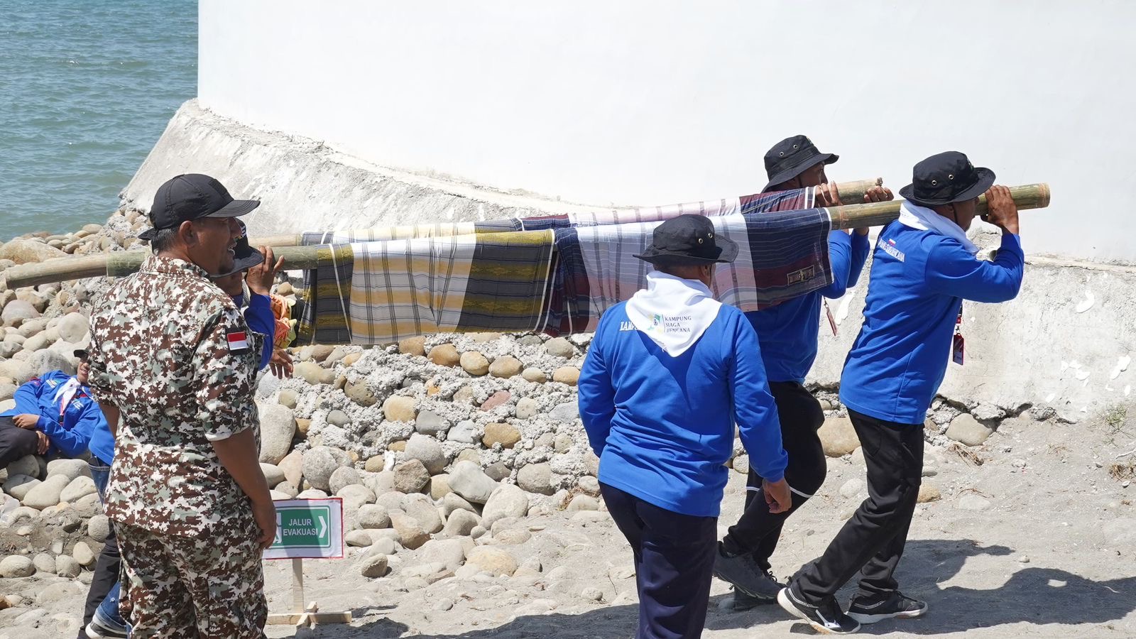 Pencanangan KSB yang digelar di pelataran Pantai Merpati ditandai dengan pemukulan kentongan bambu secara bersama-sama dan dilanjutkan simulasi penanganan bencana oleh anggota KSB dari Kecamatan Ujungbulu dan Kecamatan Gantarang, Rabu 13 Agustus 2025.