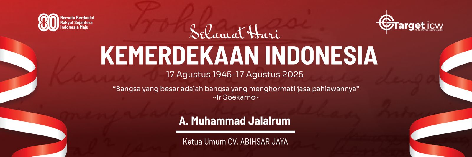 Bulukumba, Targeticw.com — Ketua Umum CV. ABIHZAR JAYA, A. Muhammad Jalalrum Mengucapkan Selamat Hari Kemerdekaan Indonesia 17 Agustus 2025. “Bangsa yang besar adalah bangsa yang menghormati jasa pahlawannya” -Ir. Soekarno-