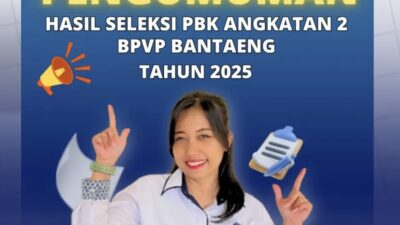 Bantaeng, Targeticw.com – Balai Pelatihan Vokasi dan Produktivitas (BPVP) Bantaeng resmi mengumumkan hasil seleksi Tahap…